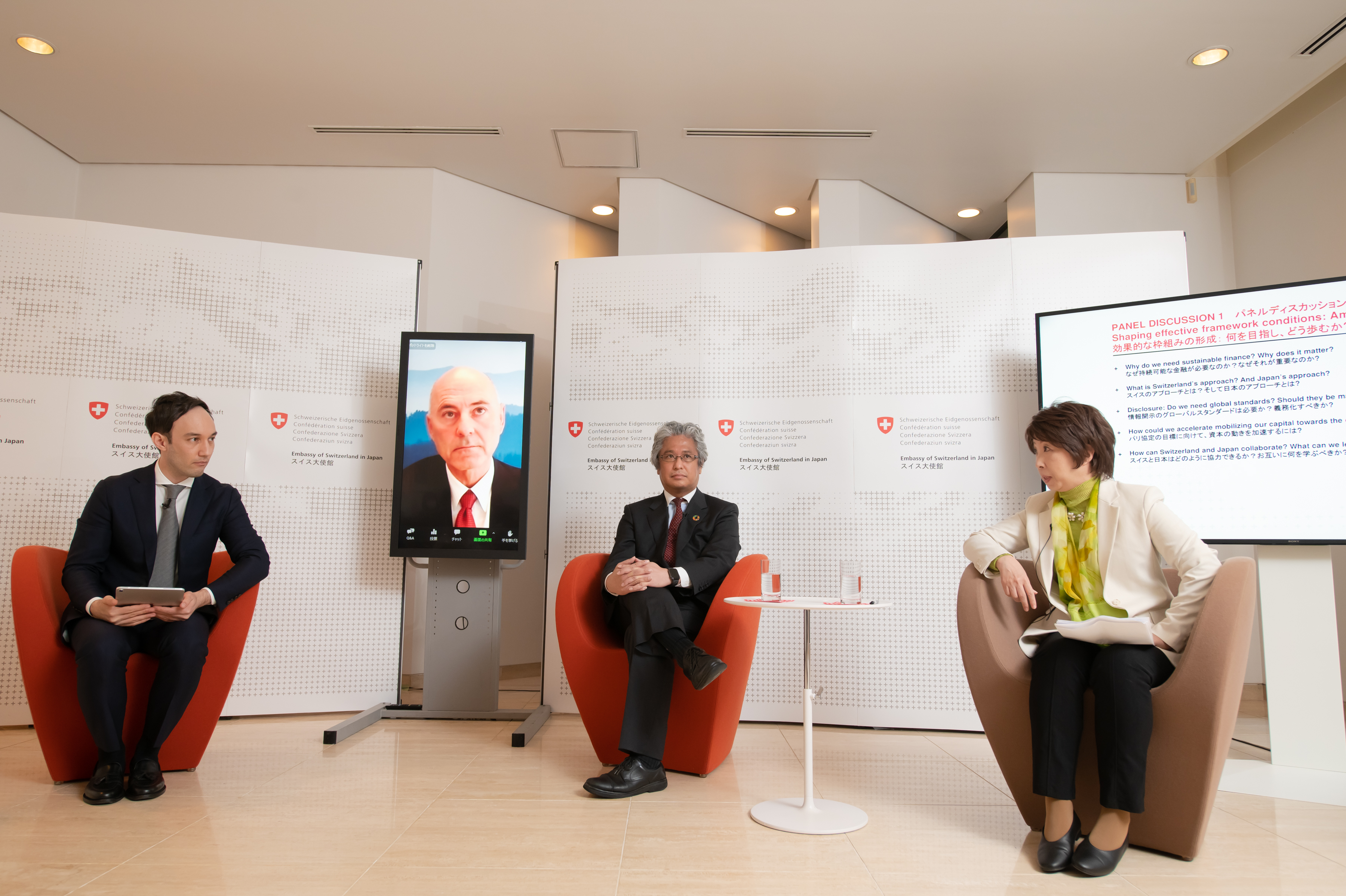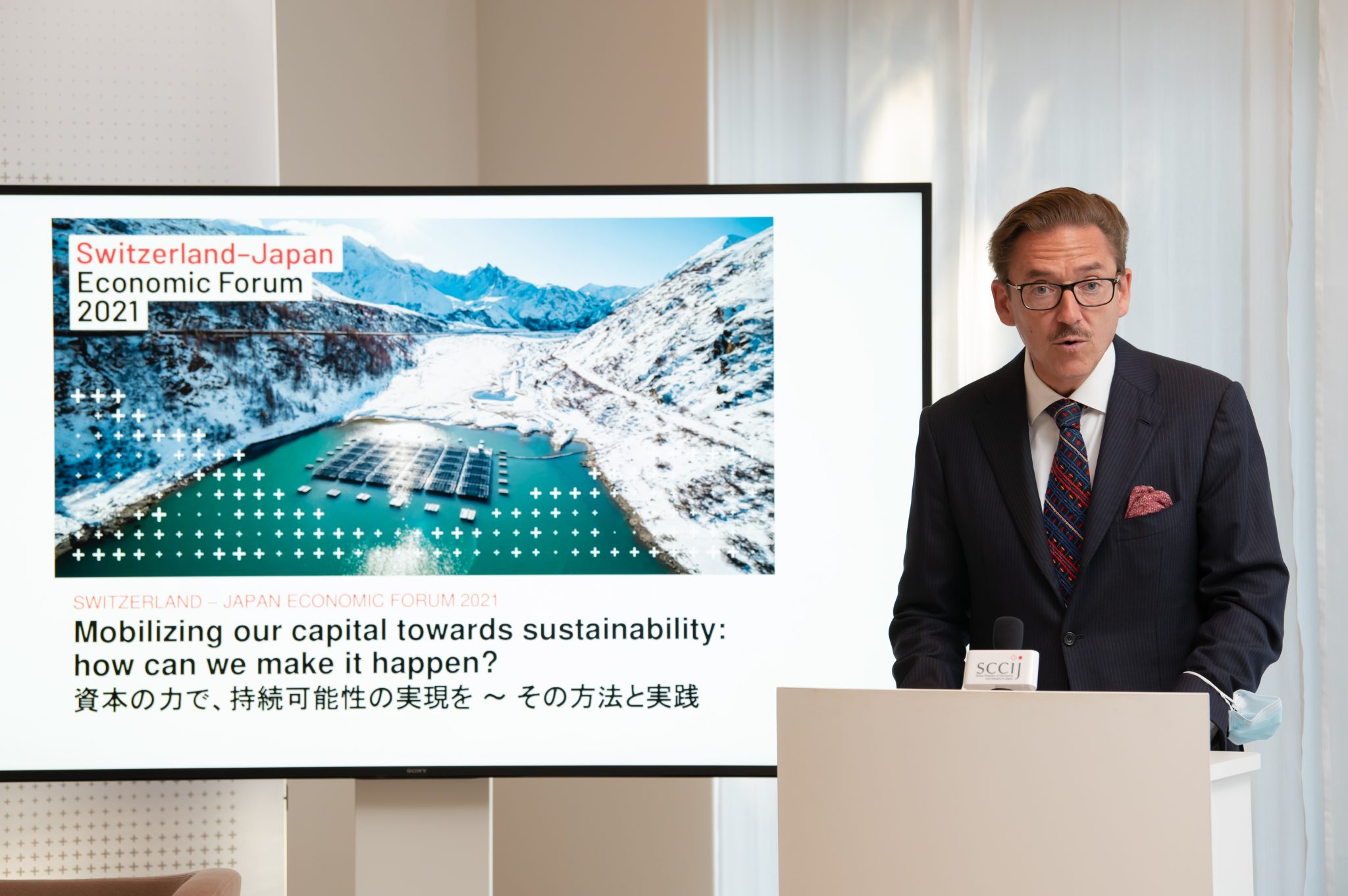 The 4th Switzerland-Japan Economic Forum took place on 20 October 2021. Just days before the COP26 in Glasgow, the Forum brought together Japanese and Swiss leaders in the domain of sustainable finance to discuss the following question: “Mobilizing our Capital towards Sustainability: How can we make it happen?”. The event was held online, with partners, sponsors and Japan-based speakers gathered at the Residence of the Swiss Ambassador to Japan.