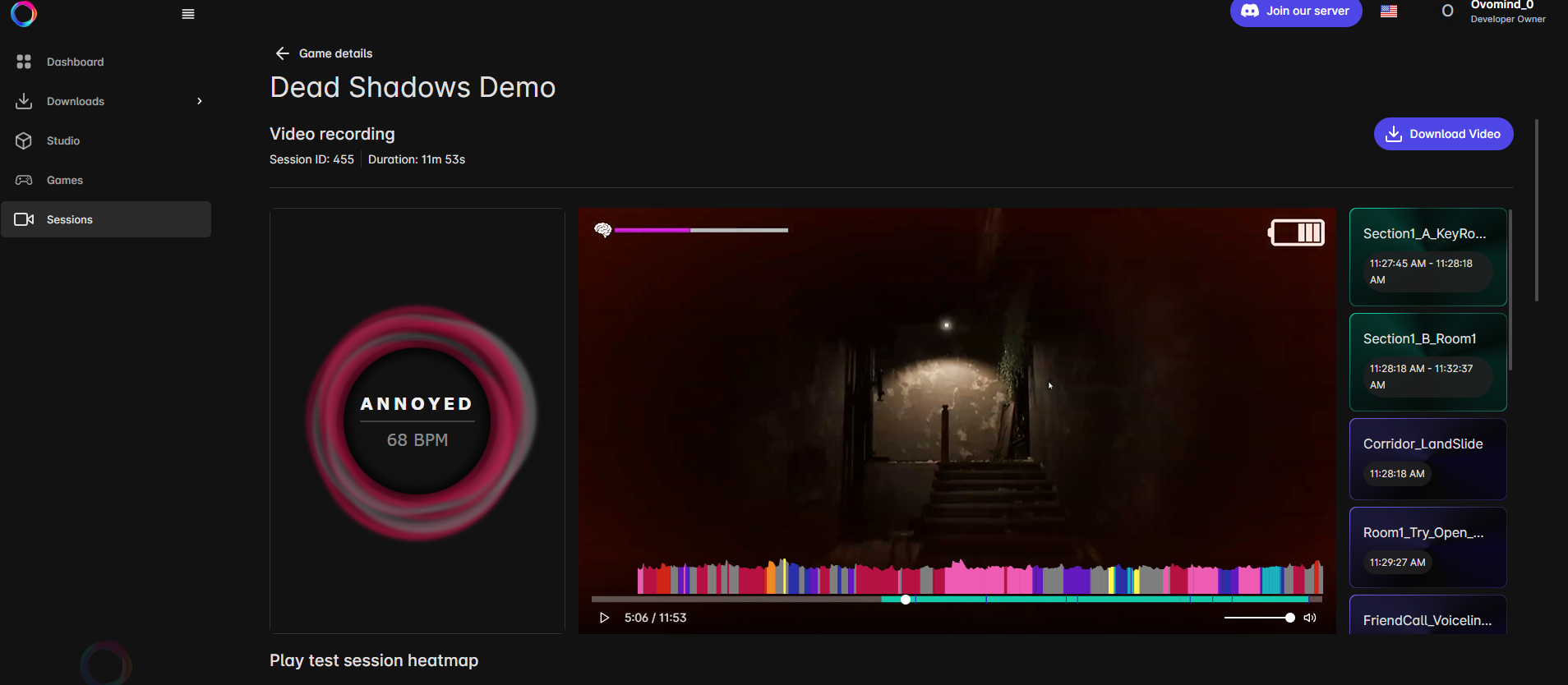 The Ovomind Smartband continuously monitors players’ physiological responses, capturing real-time emotional data such as excitement, stress, and calmness by measuring signals like blood volume changes (PPG), heart rate, skin temperature, and galvanic skin response (GSR). This data is visualized through emotion heat-maps and integrated directly into gameplay systems, enabling developers to create more immersive, adaptive, and emotionally engaging experiences.