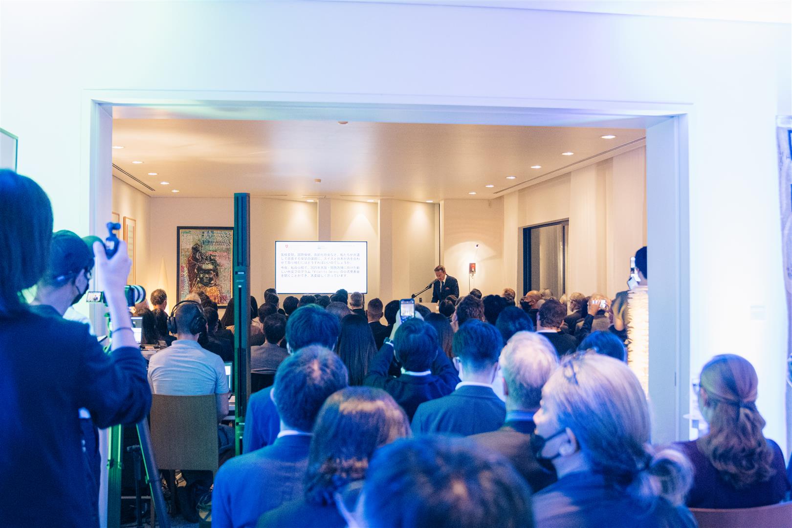 先週の木曜日も大使公邸で行われた久しぶりの人々が集う開幕イベントには、櫟真夏公益社団法2025年日本国際博覧会協会副事務総長や2025年 日本国際博覧会の会場デザインプロデューサーの藤本 壮介さん、クリスティアン・シュワルツェネッガー チューリヒ大学学部・科学情報担当副学長を含む著名な方々がスピーカーとして参加、さらに70名を超える参加者が集い、盛大なスタートを切りました。